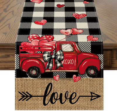 Buffalo Plaid Hearts Love Valentines Day Table Runner Truck Valentines Day Table Runner - Anniversary Wedding Seasonal Kitchen Dining Table Decoration for Indoor Outdoor Home Party Decor 13x72 Inch
